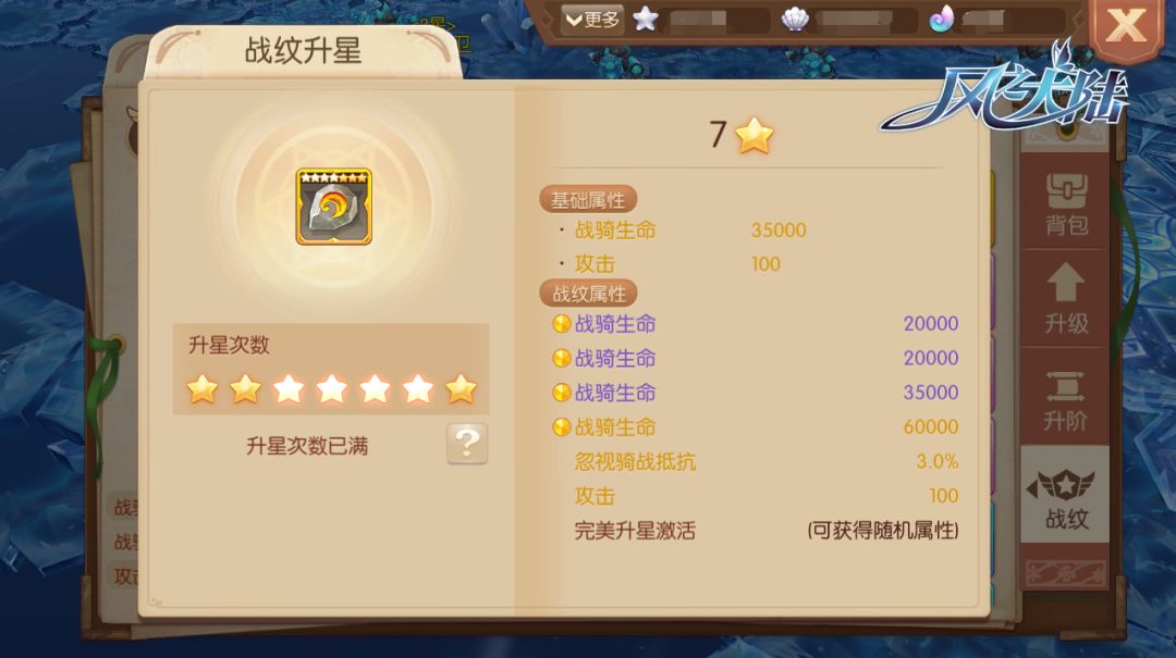 当角色达到70级,小可爱们便能通过天空之城玩法获取战骑。战骑升级和升阶为养成战骑的基本功,想必不必多说大家也清楚,因此我们主要探讨一下战甲和战纹的养成~