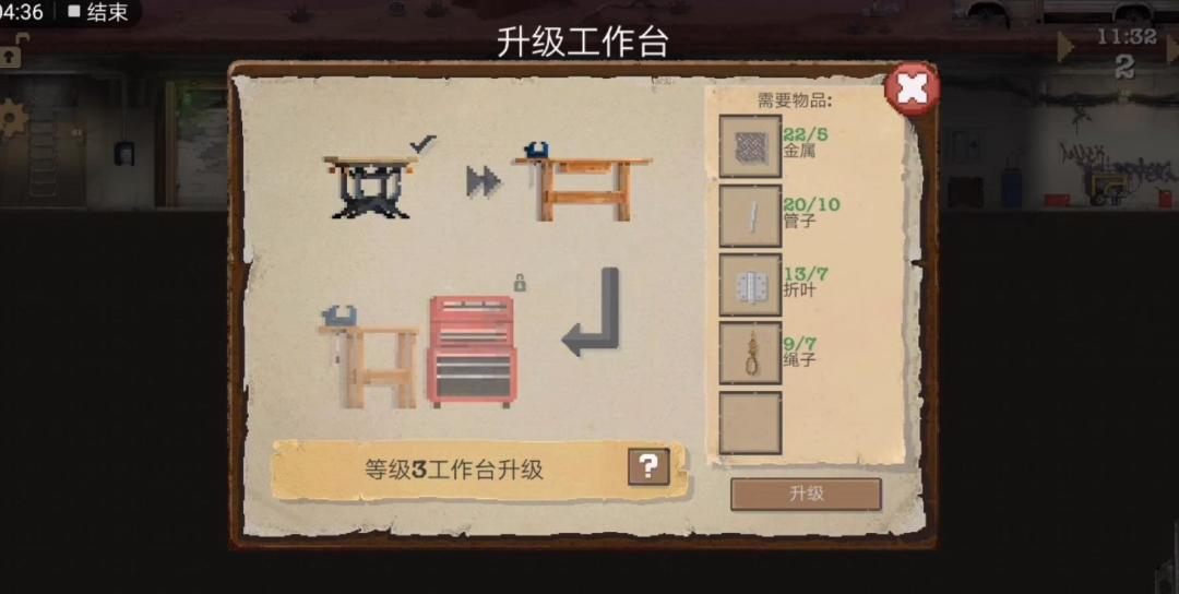 3、最先升级工作台,其次升级电台(前期净化器、净水器、发电机都可以不升级):