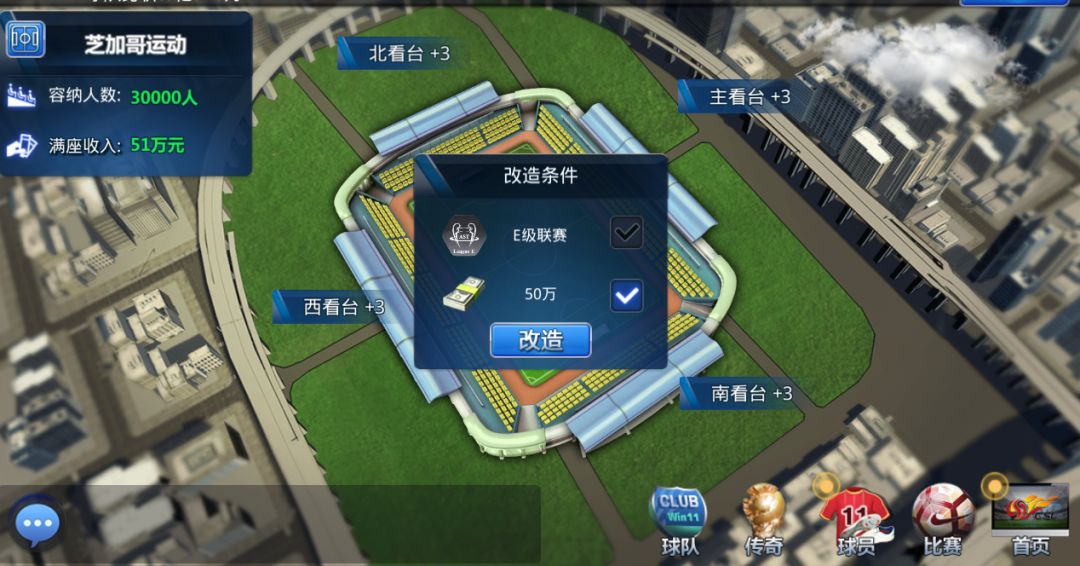 球场扩建是需要一定经费的,同级别下各看台的扩建费用是相同的;