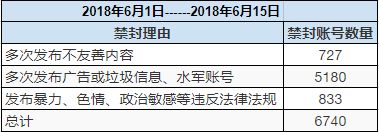 总计有6740名用户被禁封: