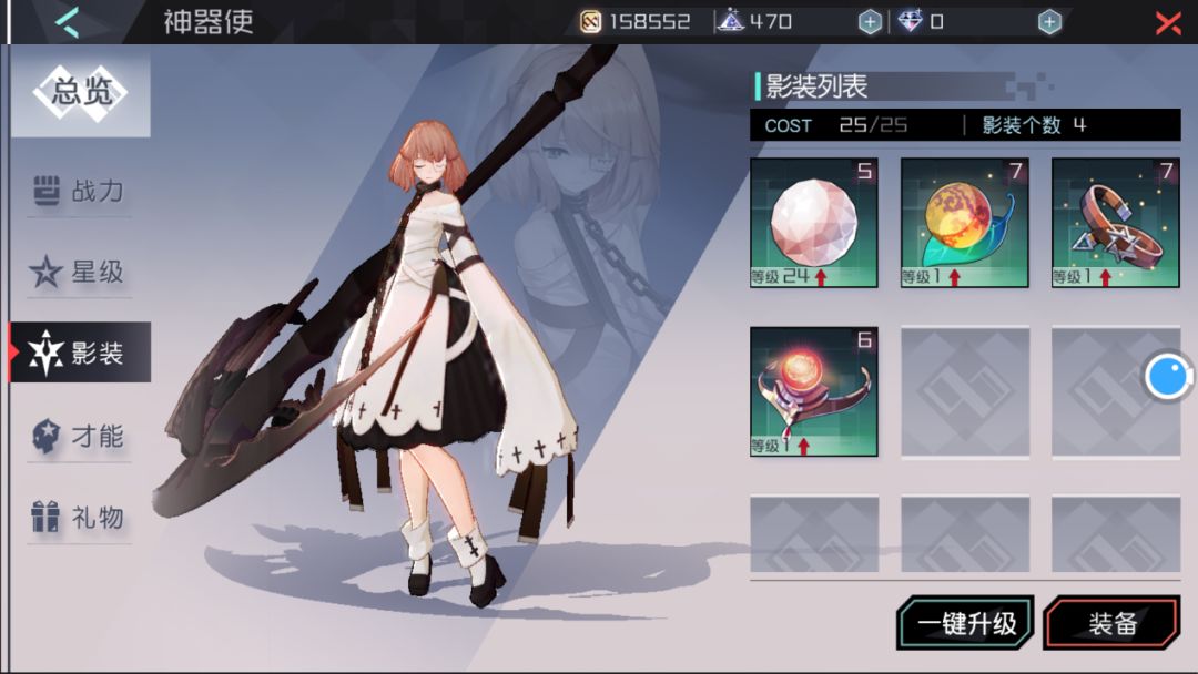 [/table]看完表格之后相信很多玩家就都已经明白了,如果说神器使在获得了加成基础属性的装备之后是被强化了,那么当神器使配置上合适的特效属性之后就会产生质的飞跃。例如游戏中免费获得的初始神器使【安】在强化了物理伤害之后叠上高数值的“连发率”,那么结合她的【时间回溯】可以一口气使用数次【秒针.瞬间加速】达到一次性完成刺杀克制属性角色的效果;再比如同样是游戏免费获得的神器使【珈儿】在叠出非常高的“连斩率”之后,她的被动技能【影打】将有更高的可能性被触发实现瞬间爆炸的效果。