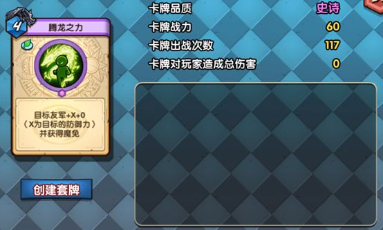 使用技巧:加给不老树等防御较高的卡,或者蓄力射手等高buff收益卡。因为腾龙之力的判定优先级很高,所以不用担心别人在你之前把你要加腾龙buff的卡解掉。
