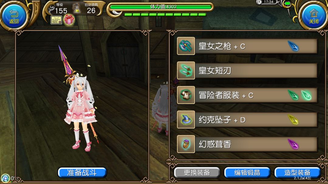 武器:皇女枪精炼C,王石么有或者暴击率+4.