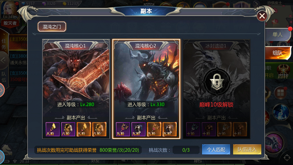 荣誉值可以通过混沌之门助战获得。前3次混沌之门挑战完毕后,接下来的20次只要组队助战进入,就可以获得荣誉值,每次可获得800荣誉值。