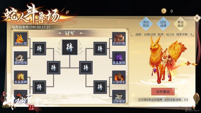 已经四次觉醒的食日火狐自然实力大增,在斗兽场中力压其他魔兽取得了一场又一场的胜利,最终成功获得胜利。