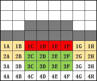 上面4排是对手的区域,灰色是对方英雄站位,下面4排是本方。