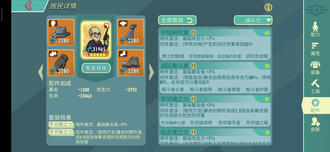 小编这边走的是暴击齐默尔的路线如图我带的是一套高配芳龄套装配上齐默尔的小技能暴击属性加的极高