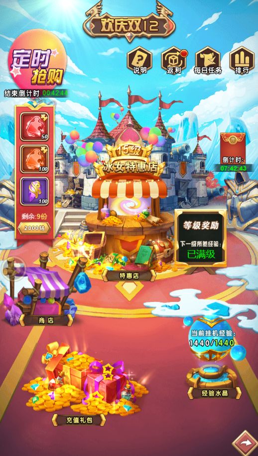 另外完成每日任务、收取水晶建筑挂机奖励可获得特惠店经验,提升特惠店等级可获得等级奖励。
