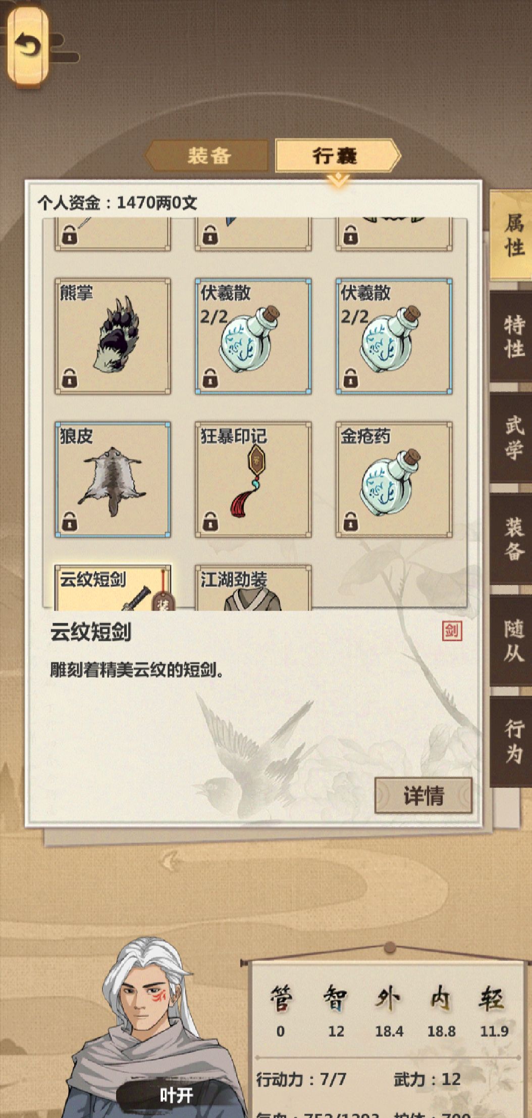 按照大佬的攻略 改一点 又刷了一遍新手村 12武力 1400多钱出村 该拿的基本都拿了。掉的衣服忘了卖了 应该是1500多出村 晒出村图