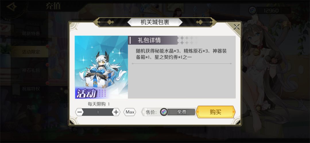1)机关城包裹 2019/12/12更新后上架,免费礼包,登录即可领取