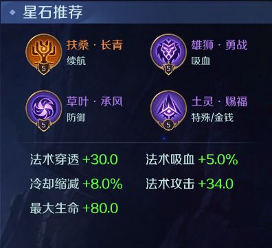 蓝绿星石首选法术攻击和法术吸血来配合黄泉的3技能形成生存能力。紫色星石推荐雄狮,草叶,土灵,保证和自身团战时更强力的生存同时,增加自身的发育速度。