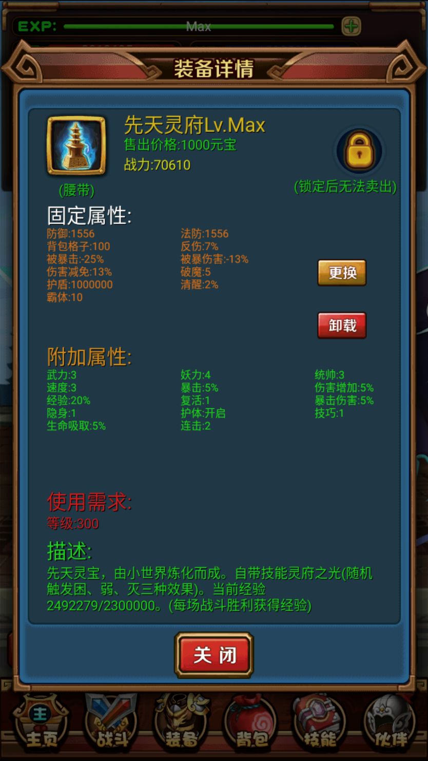 腰带:先天灵府(灵器阁1500极品仙灵石可换)