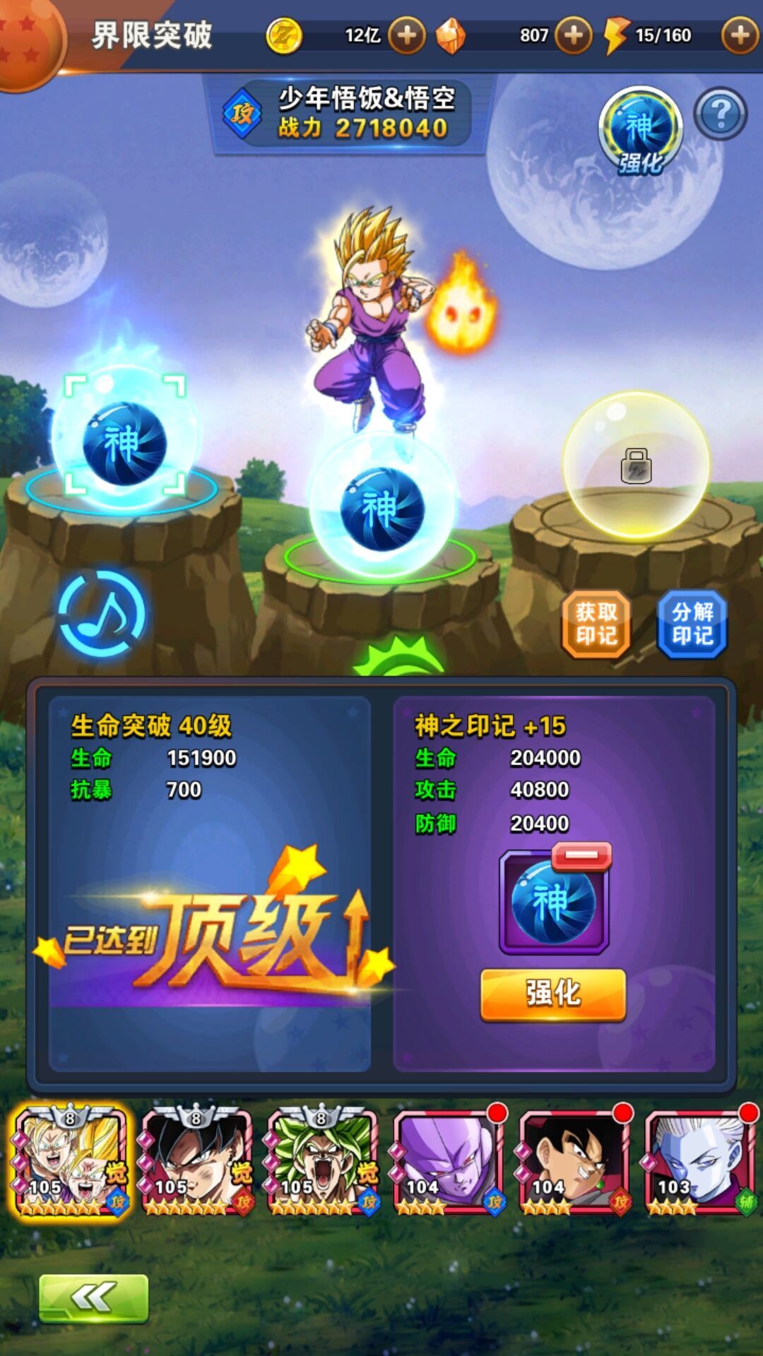 关于界限突破,因为目前还无法重生,所以建议只弄满极限卡,其他卡随便点点就行也不会差太多属性战力,但是神之印记(也就是这个石头)在后面几级的属性差距还是比较大的也很难升级,没有保护石保护直接就碎了,而后面所需要的紫色保护石实在太多一般人根本搞不起所以这个推荐一个很多游戏适用的垫子法,可以先选几个等级低的强化,当连续多次强化失败后再去强化你真正需要强化的那个高等级的印记,一般成功率会相对高很多