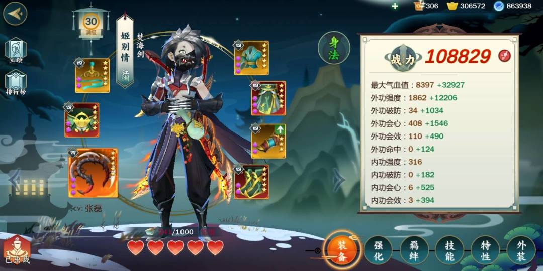 这个堆法是按我本人的面板跟属性说的,实战会心率在50%左右,破防在jjc里除了打秋叶青这种外功奶之外,打600外防的内功奶基本上跟练功房伤害差距不大。防御方面可以让奶妈带个为国,感觉扛不住的话也可以再洗一个减伤词条,水链连中后加一块身上有40%的减伤,基本上不用担心生存。