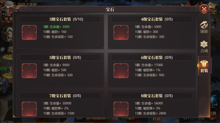 如果在某一等级的宝石镶嵌数量满足条件,还可以激发相关的宝石套装属性,极大的提升宝石效果。