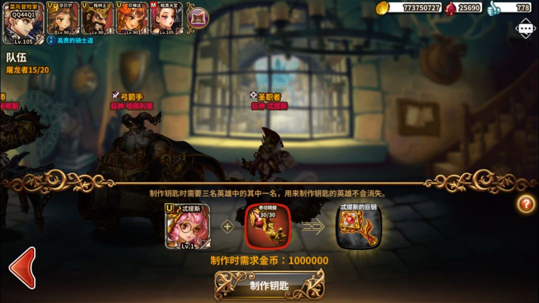 >制作屠龙做所需要降临英雄数从3人变更到1人