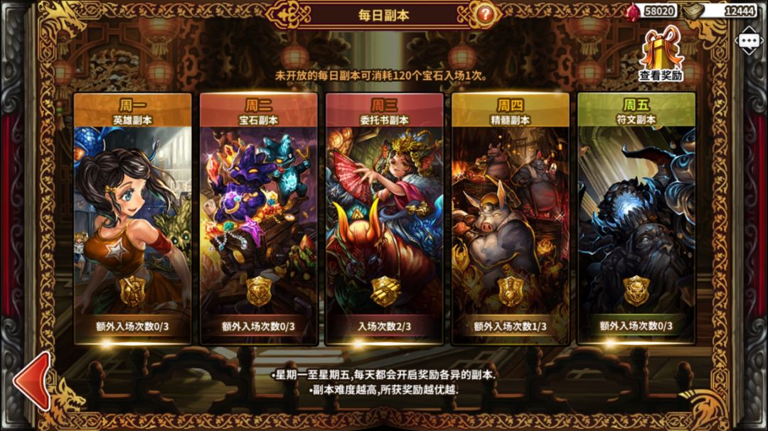 >开启其他每日副本:150宝石>120宝石