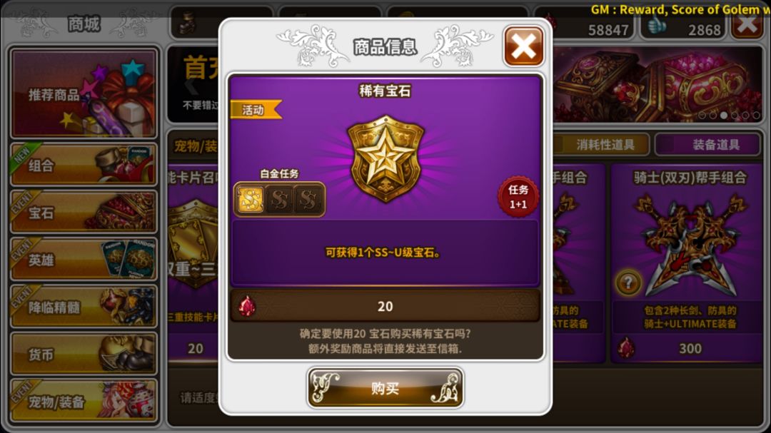 >¥648:SSS英雄20 + 7 =27张 + 【黄金骑士团饰品 or月光灵气宝石*5】