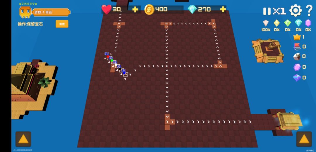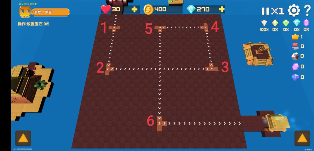 《宝石塔防2》这款游戏的特点在于:①怪物不是直奔终点,而是必须经过6个路径点;②可以通过摆放宝石改变路线;③每轮免费出5个(可通过天赋增加)宝石,但只能保留1个。