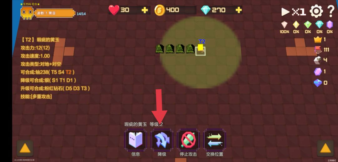 有升级,就有降级。“降级”是指将某个宝石降低1级。降级操作只能在保留宝石的那波执行。比如在第1波保留了T2,那只能在第1波选择降级,到了第2波就没有这项操作。“降级”的主要目的是凑合成或凑羁绊。