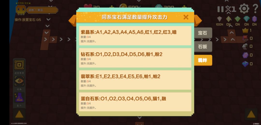 可以看到,初始的宝石品质是1级,只会出现1级宝石。右下角则可以花费金币提升整盘游戏的宝石品质。