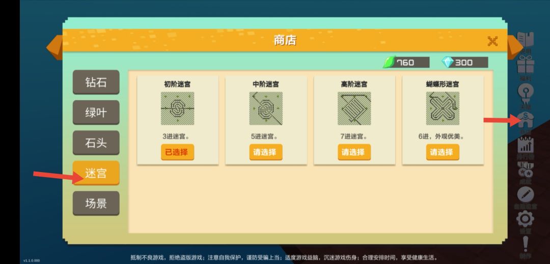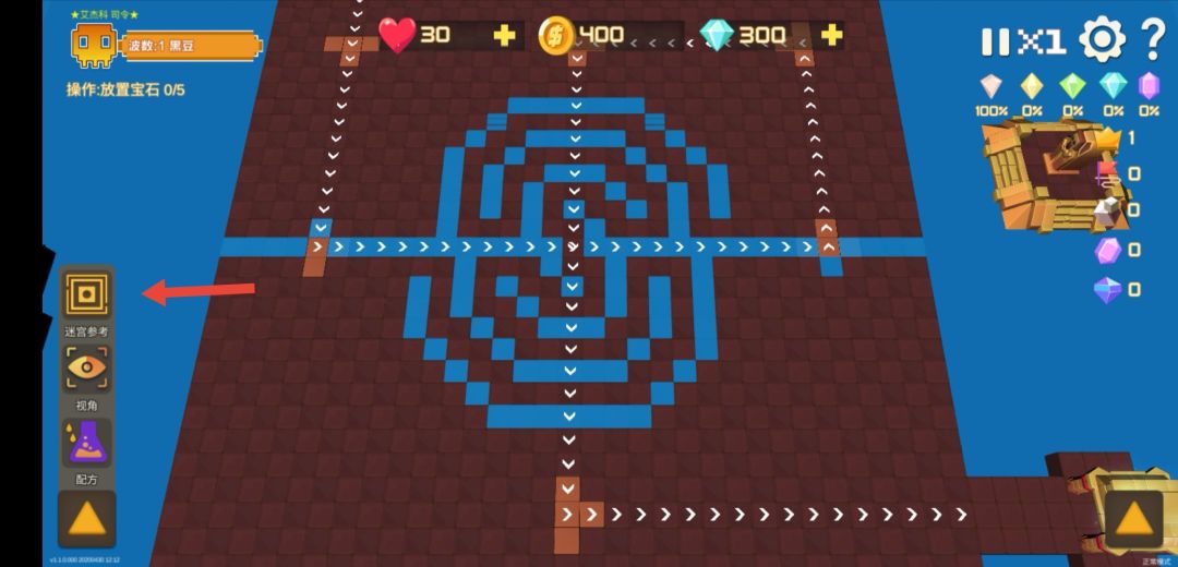 前面的合成、升级等都是决定留下哪个宝石,而其余变成石头的部分则可以用于构建迷宫。初次游戏建议从游戏自带的3进迷宫开始。
