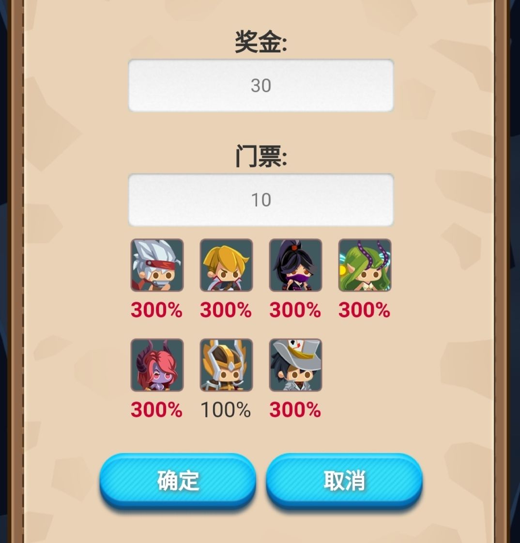 守护没啥说的,这个游戏核心是强化自己而不是强化队友,卖队友才是王道,就是女刺客也是对自己加成,其次矿石数量也有限,运气不好到3-1两块矿石不是没可能。但守护也不是全无用处。一,冒险养无敌塔,这样抢了领主你可以再用魔剑打这一关,然后借魔神箱无限刷。二,正因为所有人都觉得是下水道,反而有了其用处。首先要说一下一个设定,城池城主门票与奖金最低比例是一比二,but,城主可以给其他英雄加价2倍,只有一个英雄维持原价(如下图),自然这个英雄就是守护者,低票城或许利益不大,但到了高票城(500:2000),其他英雄进不去,守护却能拿到巨额奖励。。。。当然也只有顶级精开能这么玩(玩也是野猪七彩海王,一个个不正经养塔,下贱)