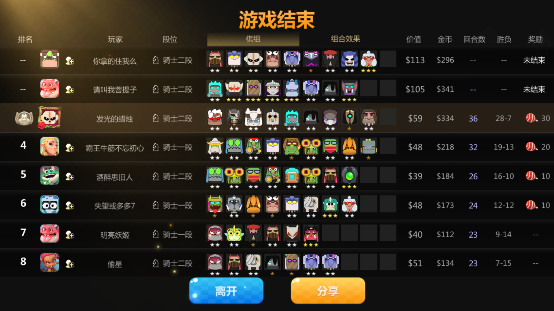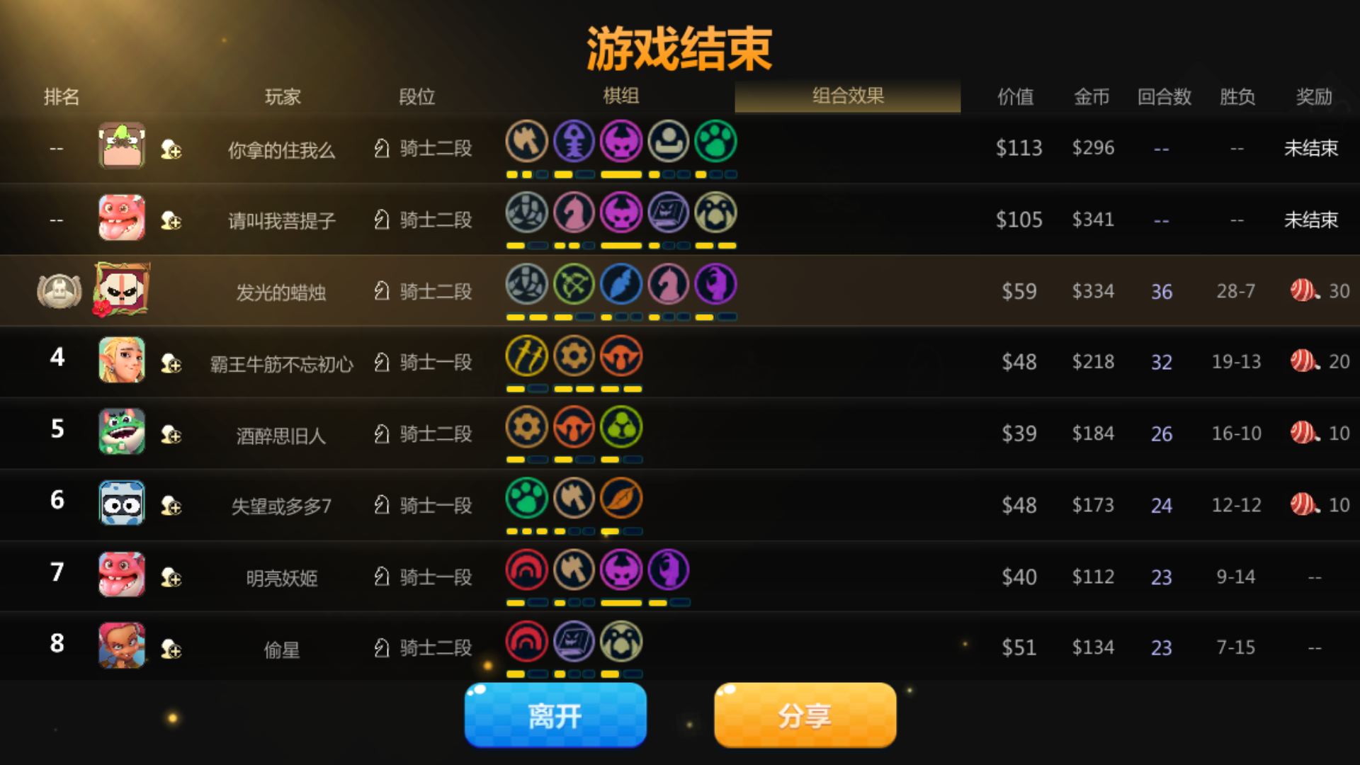本来排位好好的第一,结果结算成第三了