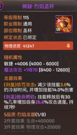 仔细检查龙器的套装属性(火攻击/水攻击/光攻击/暗攻击)及面板属性(力量,智慧,敏捷,体质)是否契合你的职业