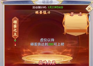 砸蛋值达到一定数量后会上榜,只要上榜玩家可获得排行奖励,若玩家砸蛋值相同时,优先达到的玩家排名更靠前