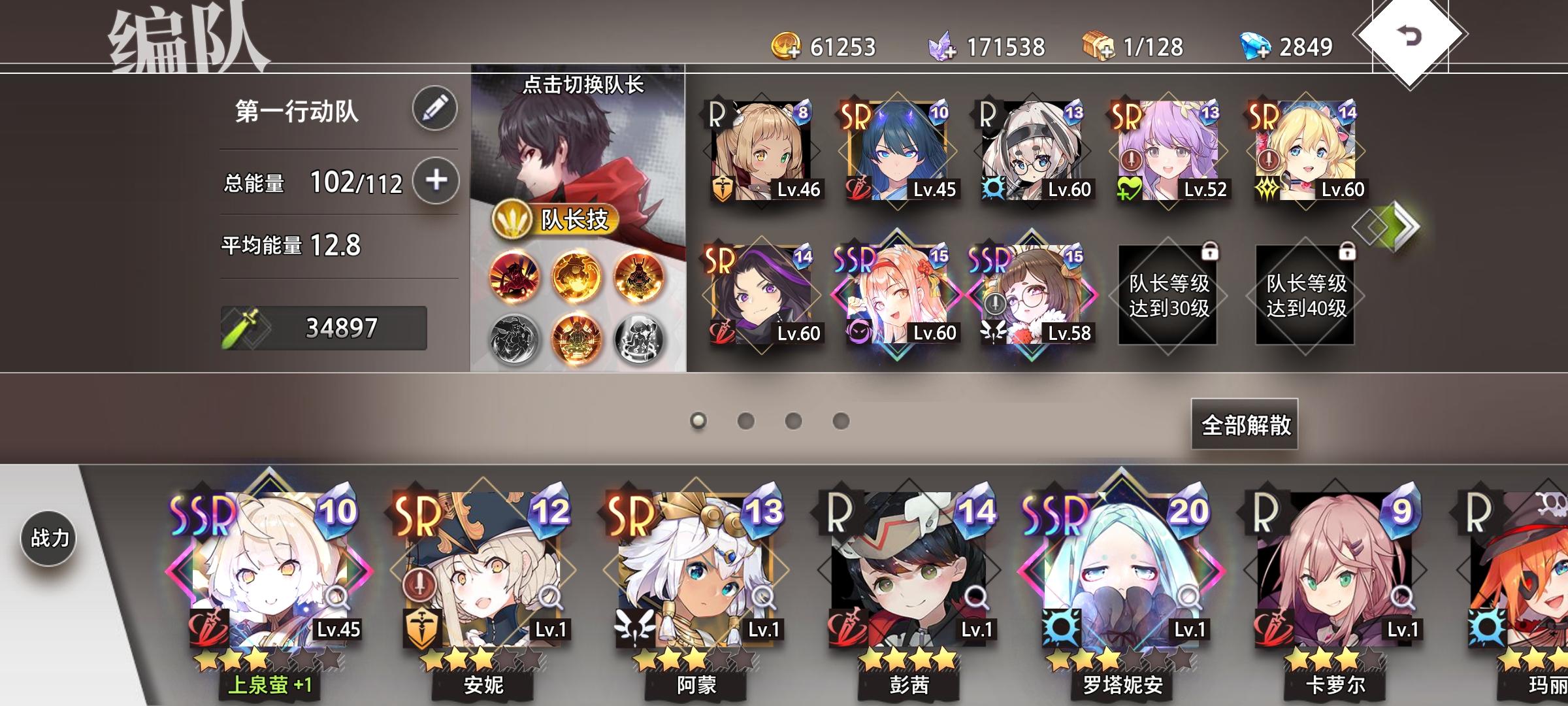 小夜也是可以换掉的,也算是暂时的工具人,破盾破无敌时下,看脸。凤凰等换了主角也是可以换掉的,到时重新组卡。还没想好组什么,看脸。安,潘,夏目,美雪,茉莉是不换的。其余你们看着培养就好。