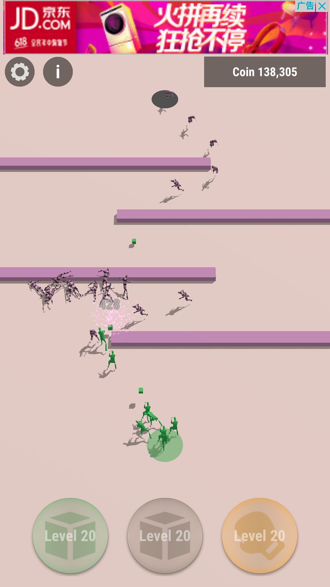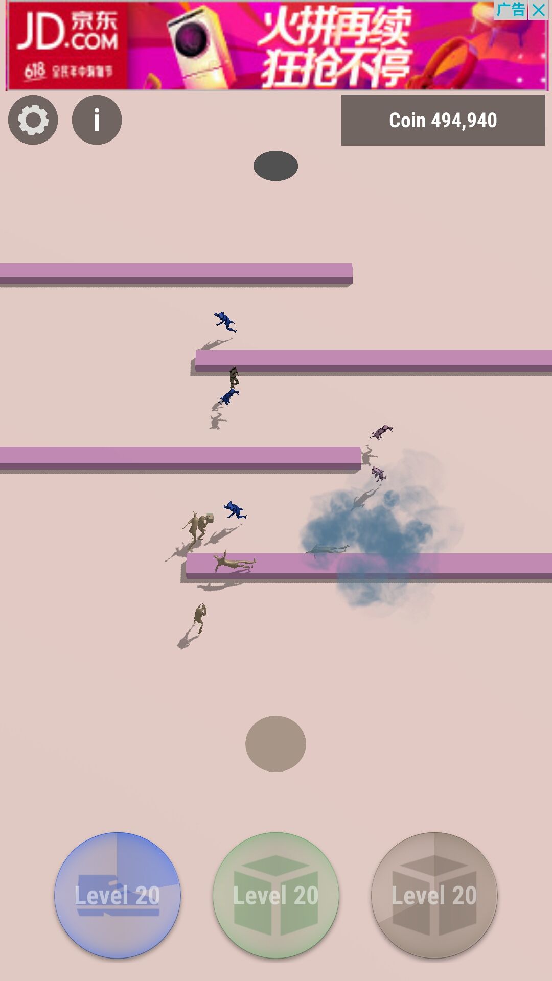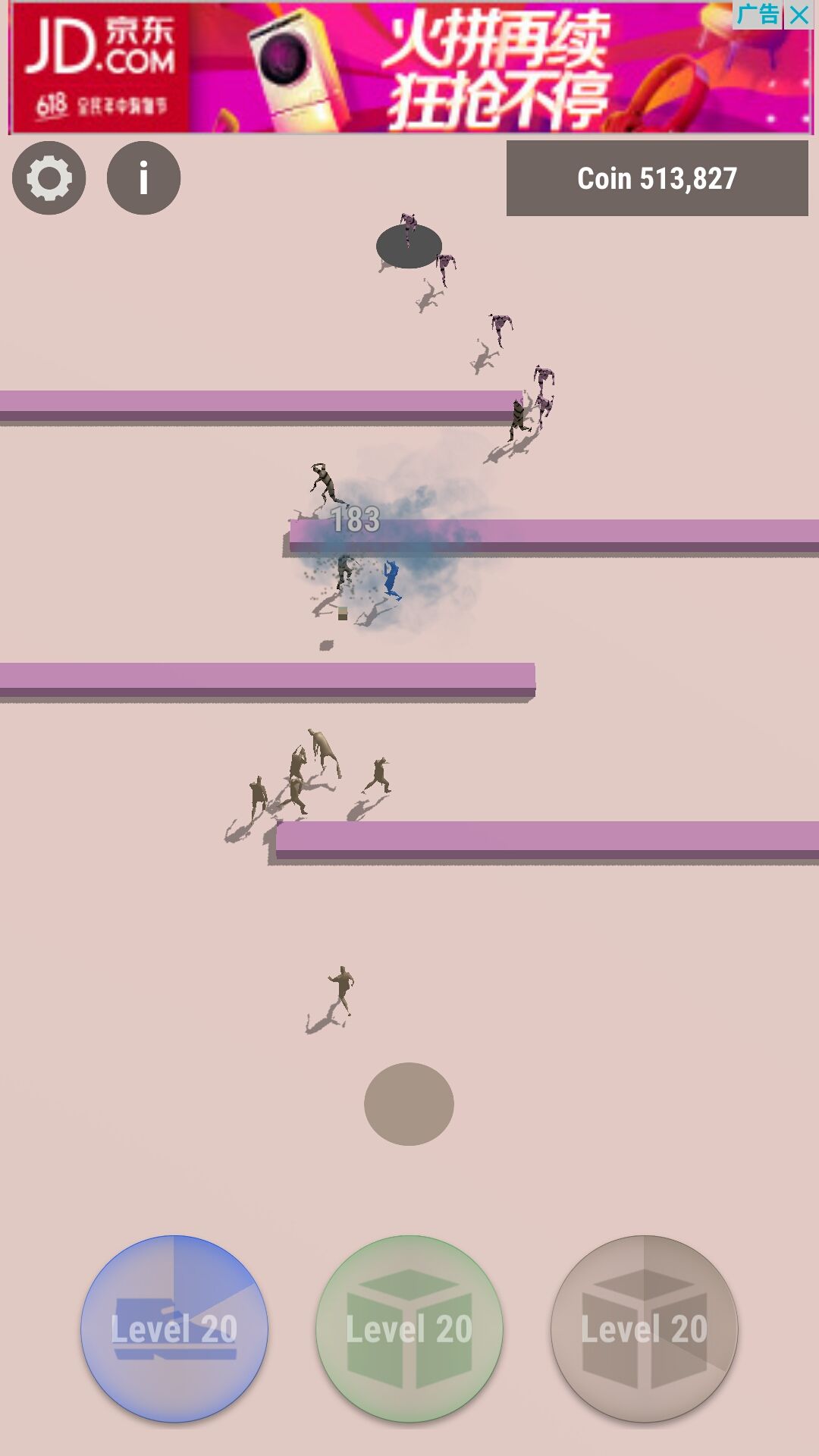但是由于绿盒遇敌会选择攻击前摇,而对面又是茫茫多的粉拳,所以绿盒会站桩输出直到后面新来的绿盒把前面绿盒挤上去,这样就能延长关卡通过的时间达到刷硬币的作用。这种刷法非常稳定而且硬币产出可观,是推荐刷法。
