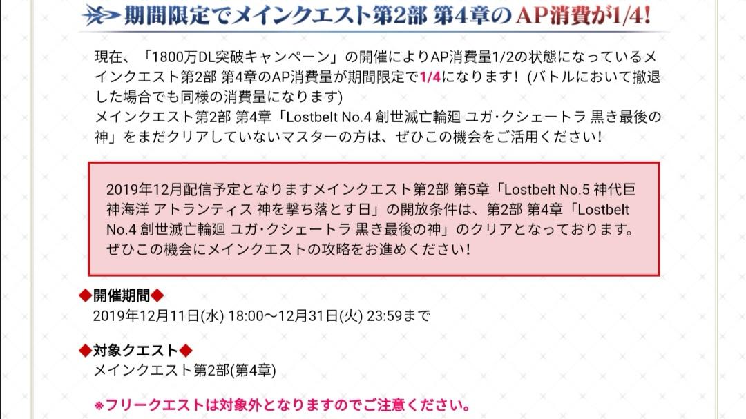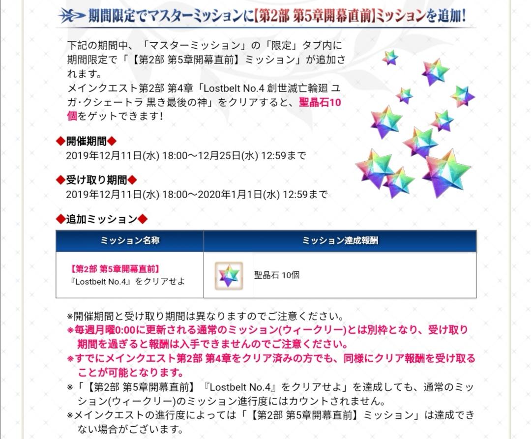 活动一.御主任务中限时追加【第二部 第五章开幕前】任务(通关Lostbelt No.4,奖励圣晶石×10)