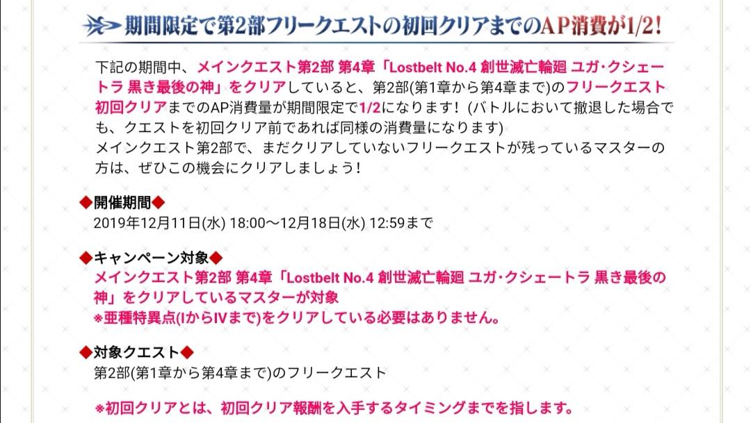 活动四:第2部自由关卡首次通关为止的AP消耗量限时降为1/2.