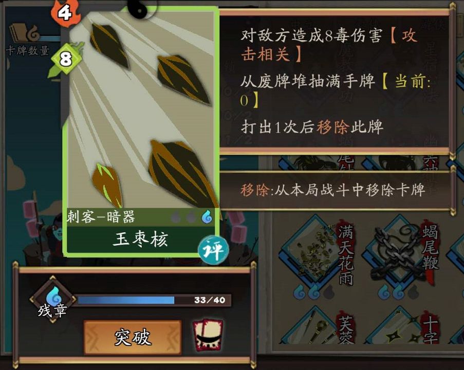 4. 打出第一张【暗玉枣核】,抽回【输出卡】