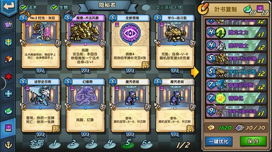 在这套卡组中加入复制流的玩法也为战局的走向提供了更多的选择,而在充能收益卡及法术收益卡的保护下,复制卡便可以源源不断的复制出更多的卡。
