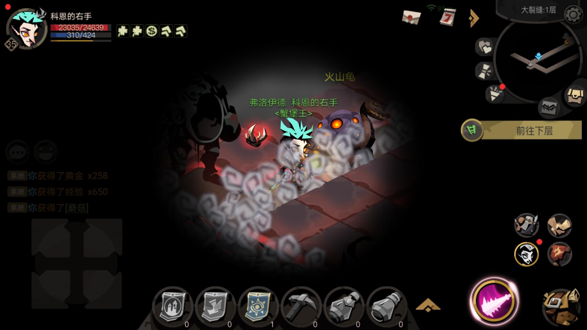 这是在奇遇出现的新型火山龟,在浓浓烟雾中,只有直面你才能发现它们,右上角小地图是看不见的
