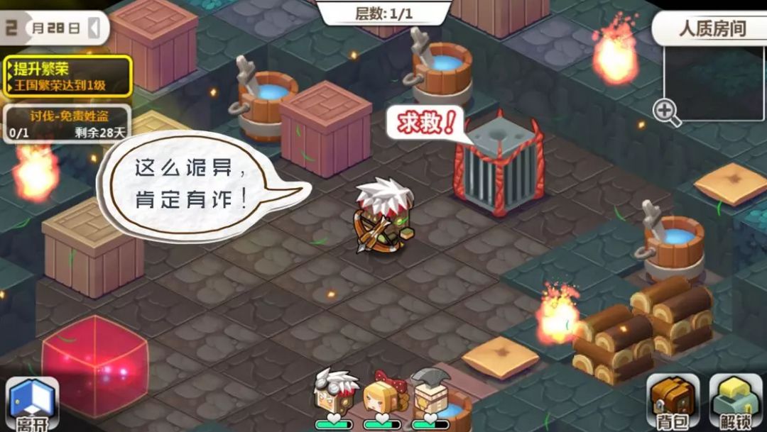 打完了菜鸡怪物,让我觉得这迷宫也就这样嘛,凭我的实力肯定能出去的,然后我像散步一样继续逛迷宫,找到了礼品盒、发光的宝箱、镶钻的宝箱、绿色的珠珠……都被我倒腾了一遍,得到了好多宝物,我乐开了花