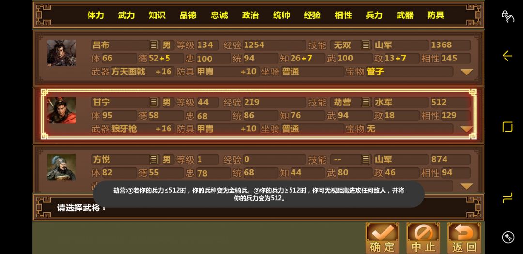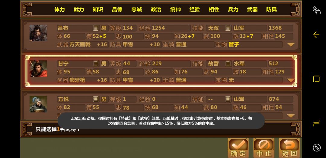 选择孙坚势力,开局先把吕布(技能无双,我方武将进攻都会变成吕布)招到手,等到甘宁(技能劫营,无视进攻距离)在野就招到,然后你就可以攻城略地了,攻城时把这两个武将技打开,再用甘宁无视距离直接打敌方太守主将,然后你就会发现进攻的人就变成了吕布了,随随便便就能打赢,两个人就能快速攻城,不费一粒军粮!