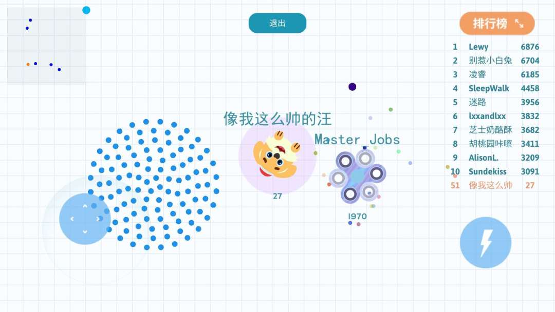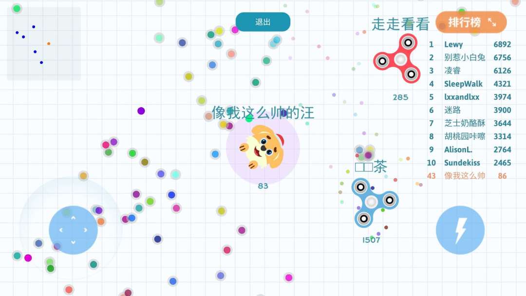 新增小地图排行榜前五位置显示,如果你还是个弱小的陀螺,要注意避开这些大佬哦,如果你是一只拥有雄心壮志的陀螺,可以根据小地图提示联合一众陀螺,一起去干翻大佬,然后成为新一任大佬,2333333333333333