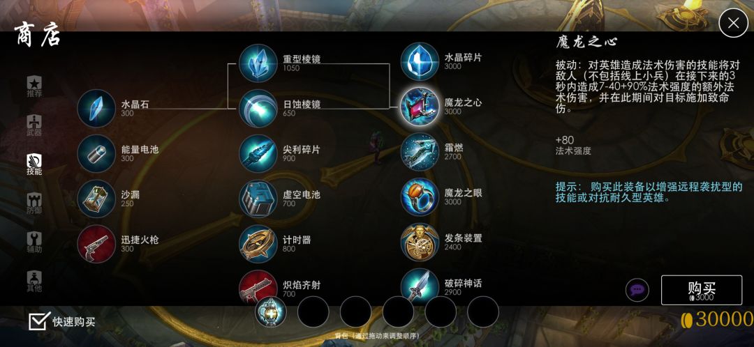 4.海鲜充能靴 减cd,加最大法力值 剩下的两件装我推荐破碎神话和庇护(前提是有后期的情况下,因为大部分的局你可能最后一件装不会出到神装就要蓝药了)如果没有后期先出一个庇护,神装前破碎小件冰茅加吃蓝药。 重点提示,合理利用萨缪尔的被动技能,每隔6秒的平a闪电吸,在一些蓝不够用的情况下,千万要吸英雄不要吸兵线或者野怪,因为每6秒的被动平a,只有在吸英雄的回蓝回血效果远远高于吸兵。