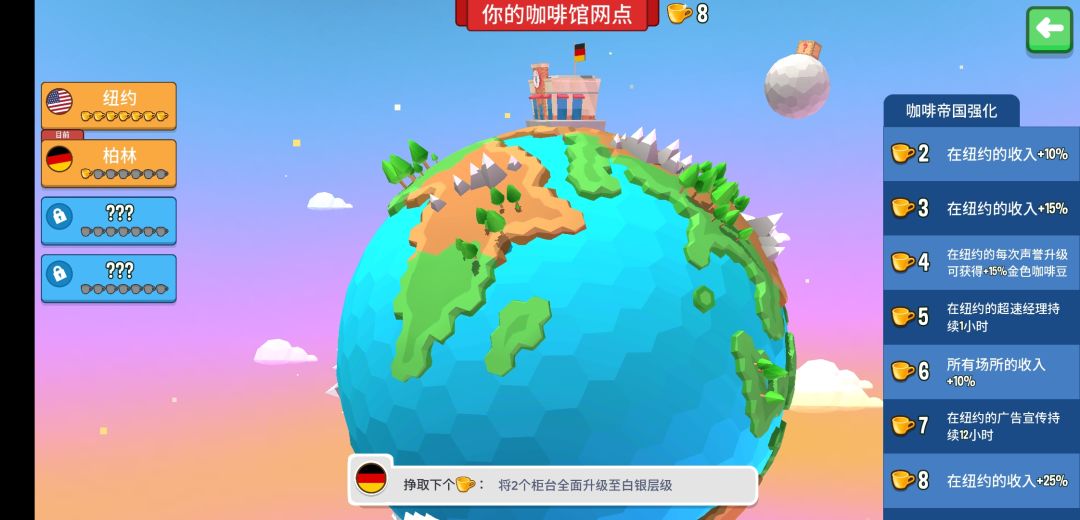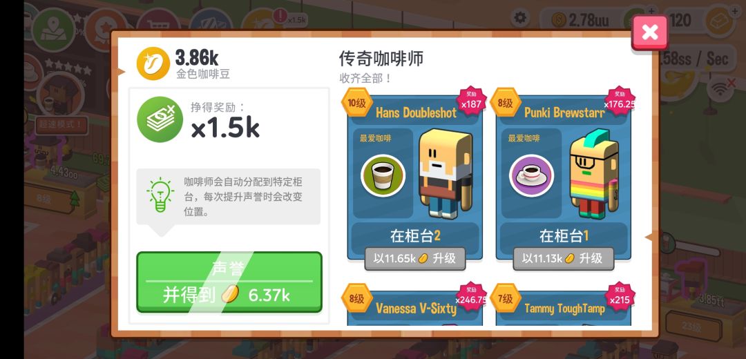 前期手动还有点意思,点的累了就自动点,自动点到没脾气了就改时间,改了几百年发现纽约通关了就没有欲望了,因为发现后面几个城市压力更大,只能这样。柜台一金色才开始改时间。