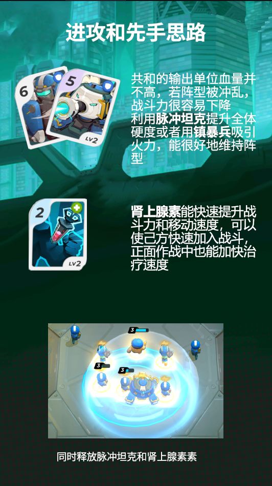 加帝斯共和国,虽没有与其他阵营一样强健的体魄与天赋,但却凭借其高度发达的科技与智慧,打造出一支拥有着强大火力与高度连接性的军团。其特有的卡牌技能战吼,能够使刚投入在战场上的部队立刻爆发出强劲的火力。