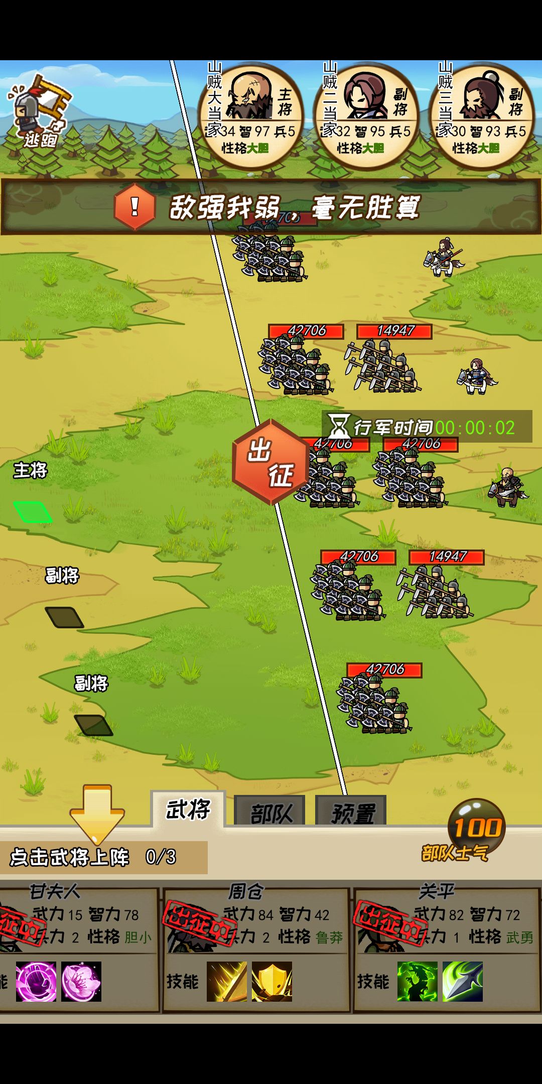中午更新完武将一直处于出征状态