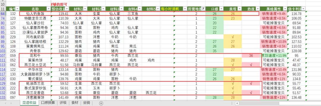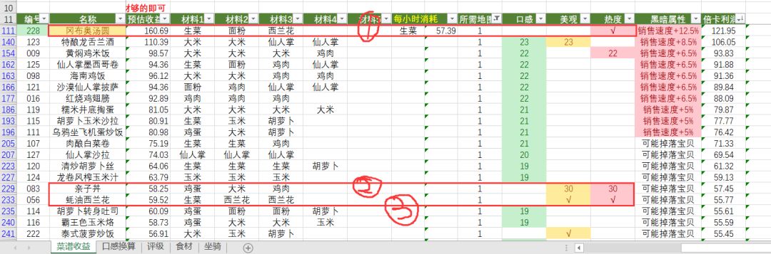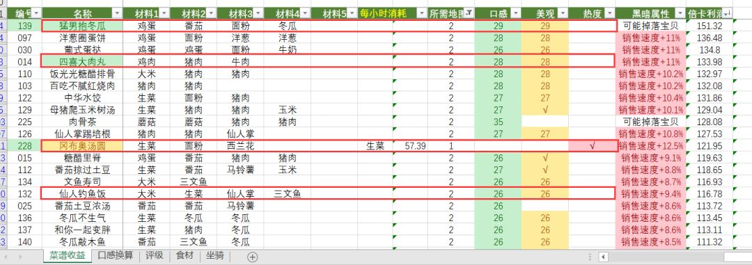 高收益菜谱: