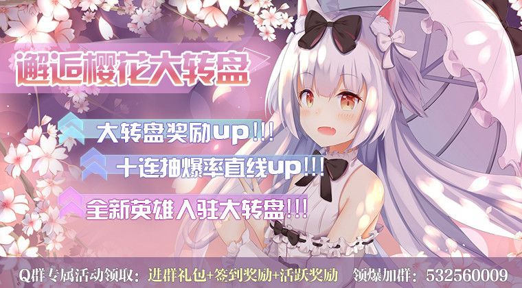 全新英雄入驻大转盘!樱花祭活动期间内大转盘奖励up↑、十连抽爆率直线up↑