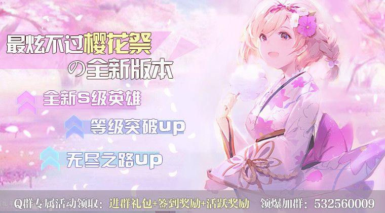 樱花祭版本重磅福利来袭:【邂逅樱花大转盘】全新英雄入驻大转盘!大转盘奖励up↑、十连抽爆率直线up↑,樱花祭七日签到福利活动也将暖暖开启!春日福利等级开放,冒险无尽之路上升150!,樱花游春之旅期待与你相遇,全民游春聚会一触即发!