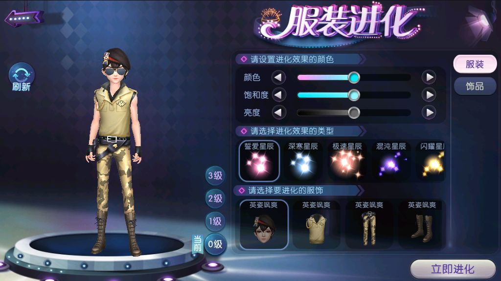 而对应的【英姿飒爽】套装则以迷彩绿为主,背心式的翻领上衣将人物健硕的身材展露无遗,下身的迷彩裤搭配同色系的长筒靴帅气无比。同时,两者的新表情也十分值得细品,其中男生新表情为大地色烟熏眼妆,魅惑深邃;而女生新表情为淡粉色裸系眼妆,温情脉脉。