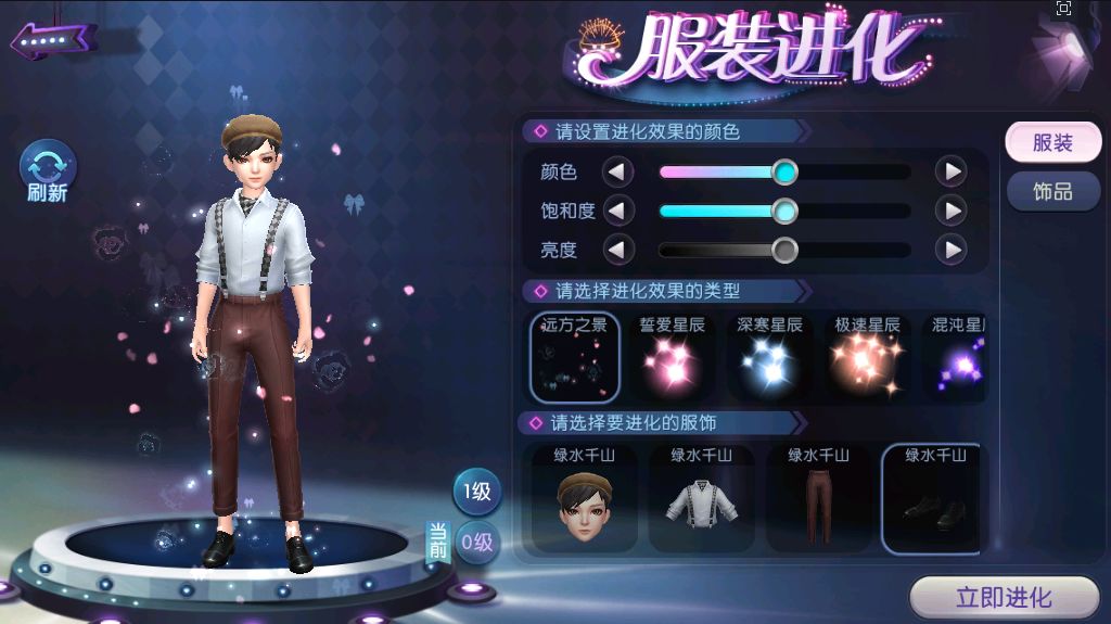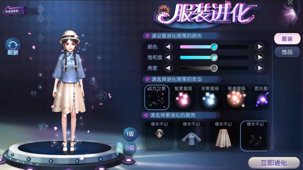 除了充满现代风格的【慧质兰心】和【英姿飒爽】系列服饰外,本次《劲舞团》手游还为玩家们准备了民国风十足的另一套新服饰。其中【绿水千山】的女款服饰以常见的中西混合式的裙衫为主要造型,杏色的半身裙尽显温婉,麻花辫的点缀让小家碧玉的气质显露得淋漓尽致。
