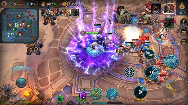 无论是开黑团战,还是随机单人匹配,《战争怒吼》都给你更竞技的对战体验!在与世隔绝的陨落遗迹里,你将与你唯一的敌人决一死战!开局击杀野怪占领金矿,快速发育占据优势,在1v1对决中至关重要。别忘了建造防御塔在矿场附近,以防狡猾敌人的偷袭!